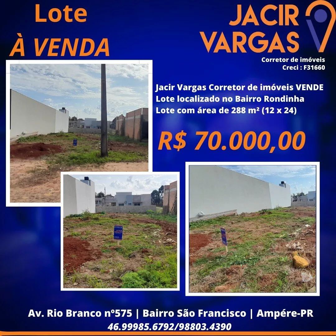 Lote á venda localizado no Bairro Rodinha