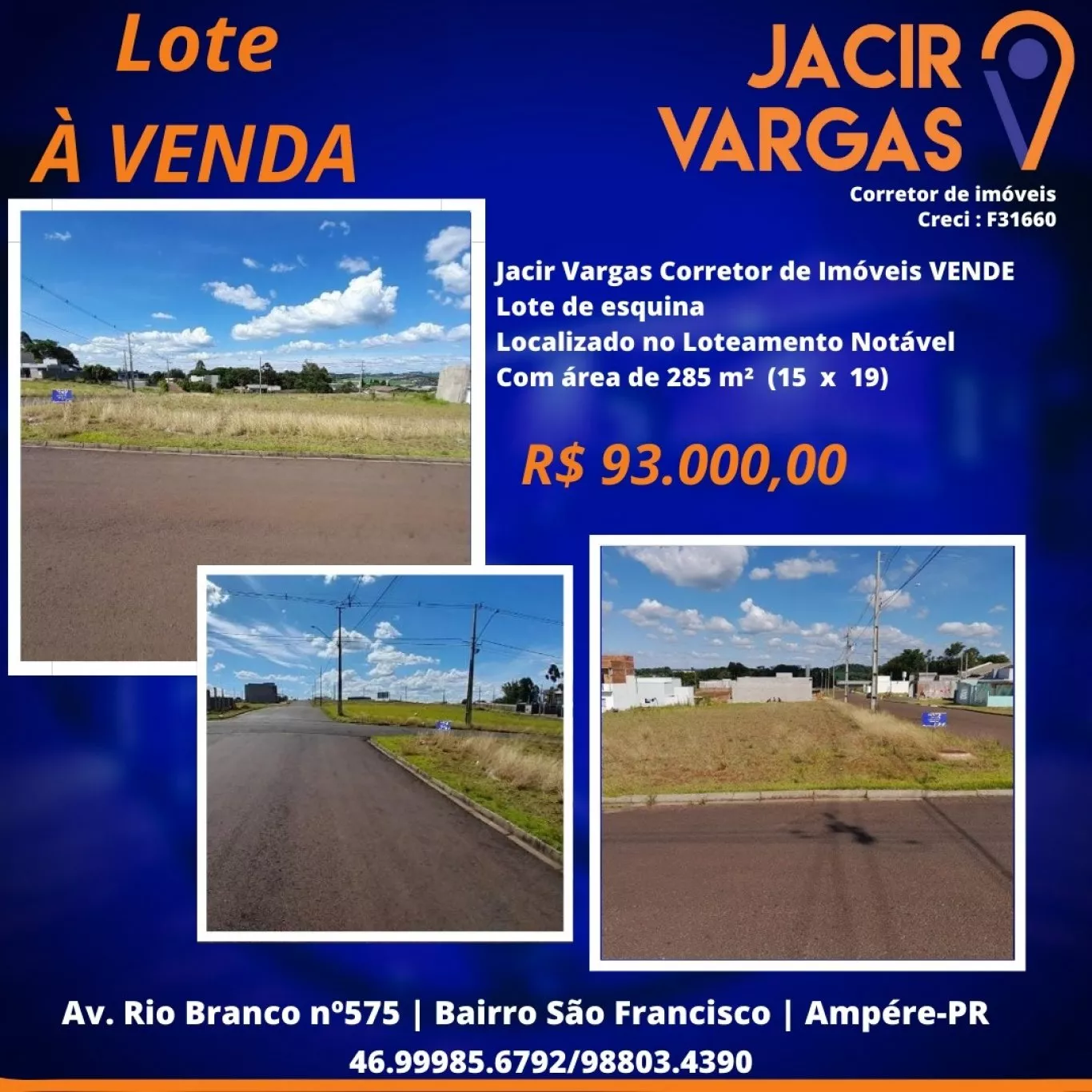 Lote á venda localizado no Bairro Rondinha