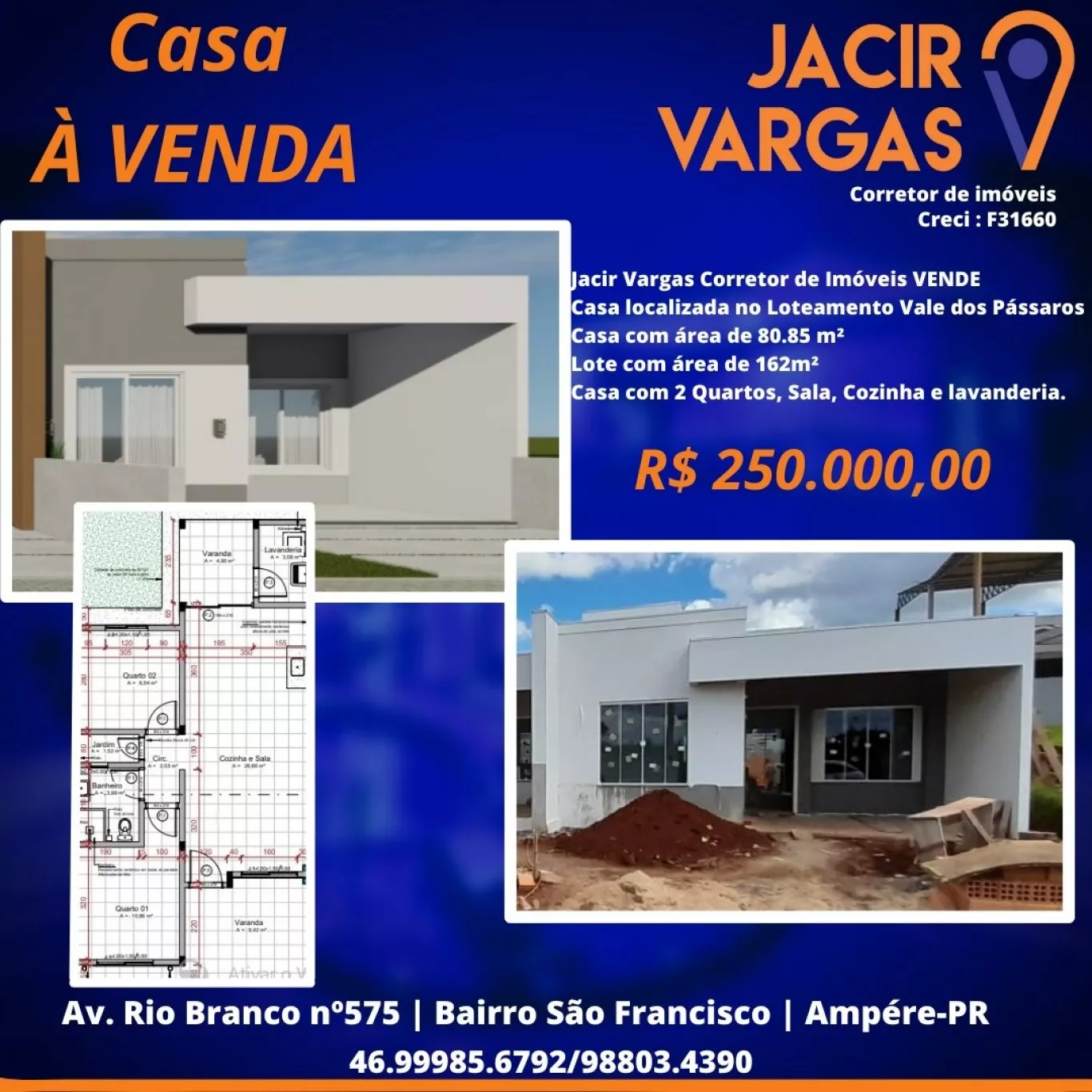 Casa á venda localizada no Bairro Jardim das palmeiras